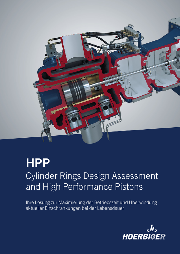 Traditionell wurden Kolben für Kolbenkompressoren nach allgemeinen Prinzipien konstruiert. Leider führt diese einfache Lösung aufgrund der häufigen Zylinderringausfälle häufig nicht zu einer zuverlässigen Kompressorleistung. Kolbenringe gleiten gegen die Zylinderwand, nachdem sie in die Nuten des Kolbens eingepasst wurden. Bei normalem Gebrauch verschlechtert sich die Außenfläche des Kolbenrings durch den Kontakt mit der Zylinderlaufbuchse. Der Ring weist einen Spalt um seinen Durchmesser herum auf, um den Verschleiß zu berücksichtigen und den Austausch zu erleichtern. Um den Kontakt mit der Zylinderwand aufrechtzuerhalten, vergrößert sich der radiale Verschleiß des Rings mit der Zeit, wodurch sich ein Spalt bildet und ein Gasleck entsteht. Geringere Kapazität, verminderte Gesamtleistung des Kompressors und unvorhergesehene Stillstände sind die Folgen. HOERBIGER hat eine technische Lösung entwickelt, um die Gasleckageleistung zu verbessern, die Betriebszeit zu erhöhen und eine längere Lebensdauer zu gewährleisten.
