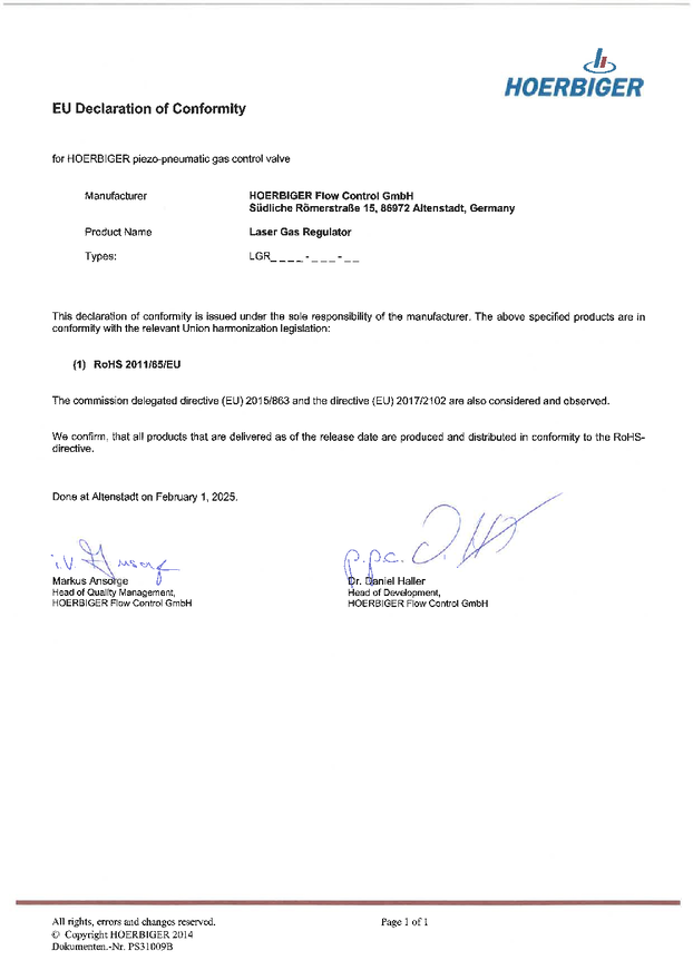 LasGAR basic (Piezo-pneumatic gas control valve)